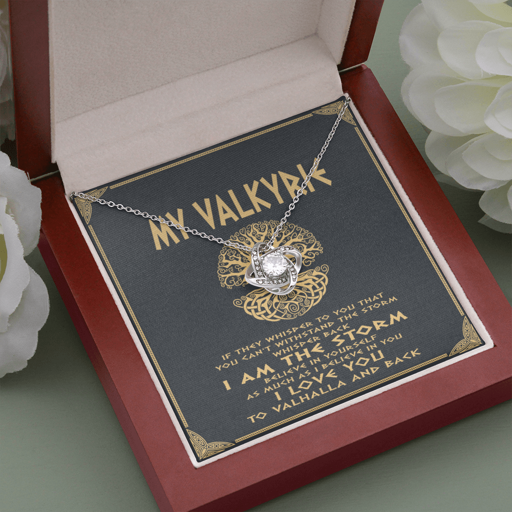 Viking love knot necklace dad mom to daughter, if they whisper to you you can't withstand the storm, whisper back i am the storm