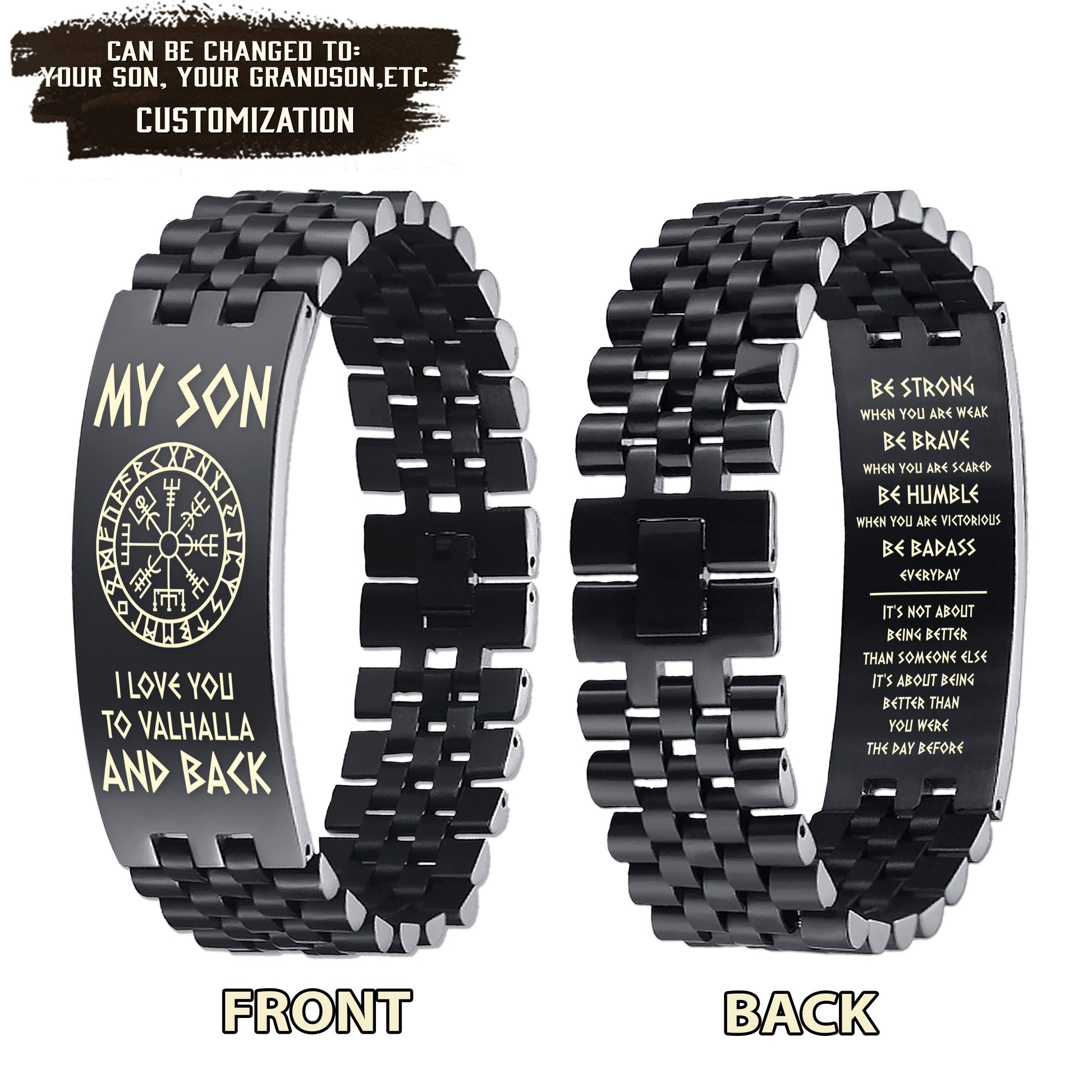 viking engraved double sided dog tag bracelet dad to son